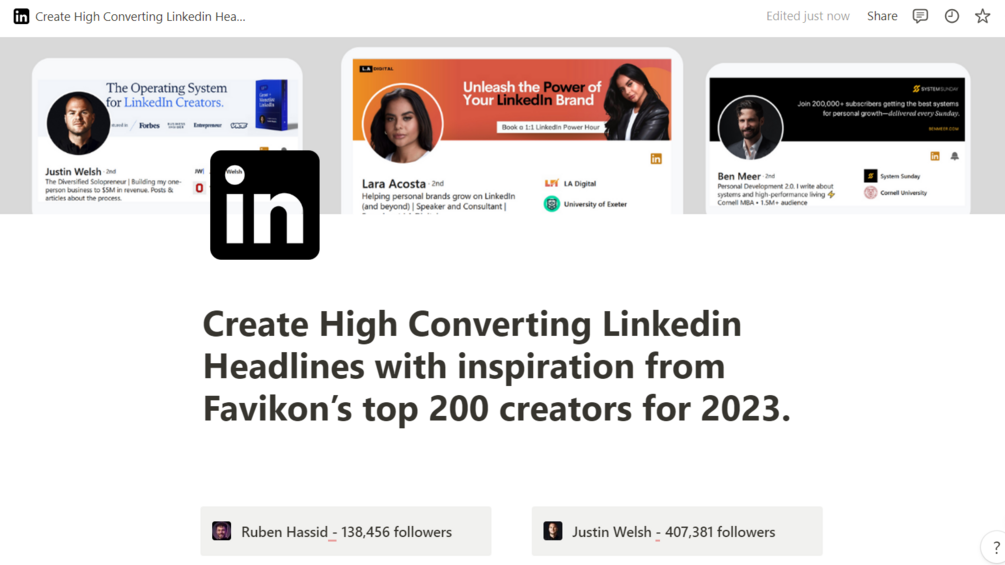 I've put together a list of the best LinkedIn headlines from Favikons top creators for 2023.